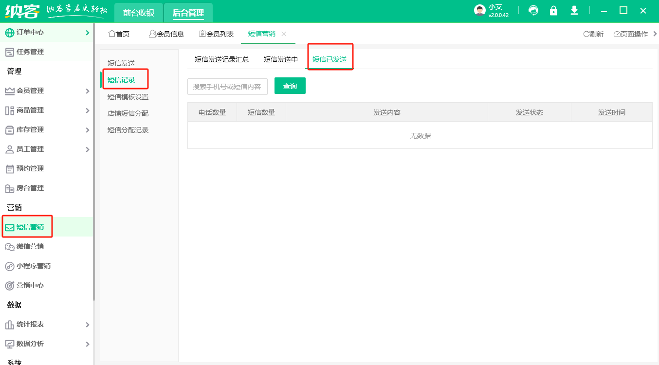 针对已发送的短信也可以在【短信记录】中查询发送的状态、扣除的短信数量以及具体的发送内容。