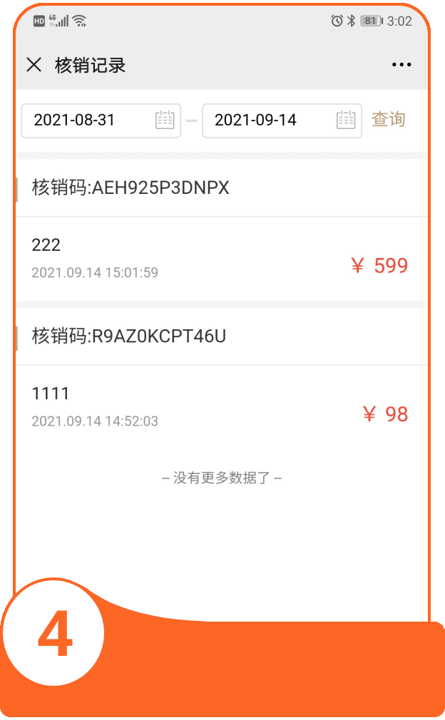 在兑换列表可以查看每个礼品卡的核销状态、核销门店、核销时间以及禁用或作废核销码