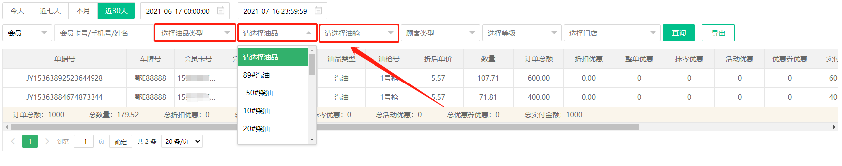 二、加油站版本油品销售明细报表优化
