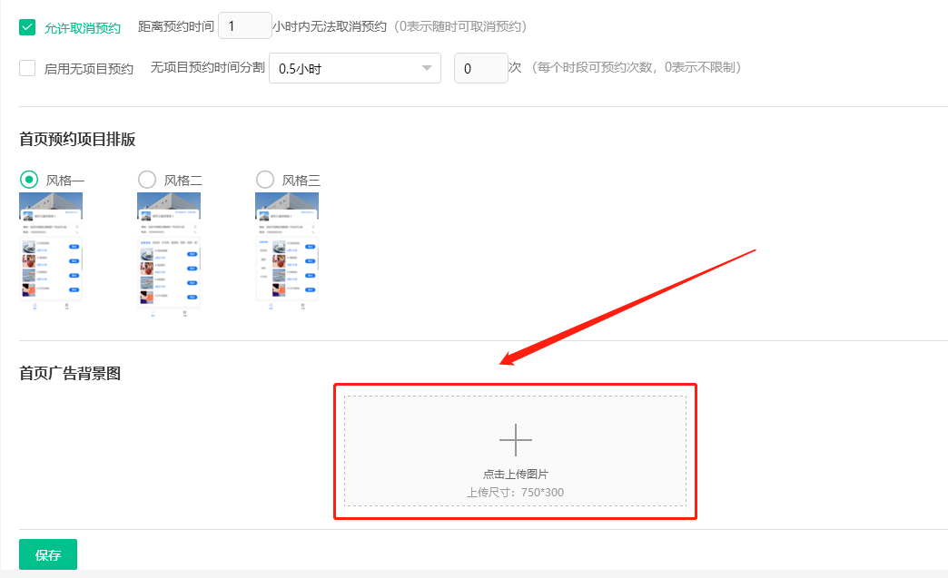 现在参数配置中,可以自定义上传更换首页的广告背景图,若不上传,则使用默认的背景图片。
