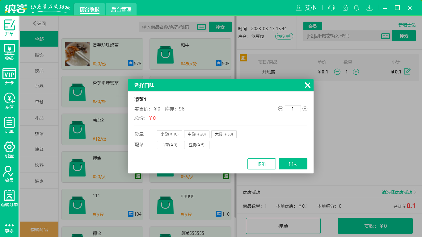 1.收银方面:支持多种付款方式,如微信扫码支付、刷卡支付等。同时支持会员储值、会员折扣等营销功能。