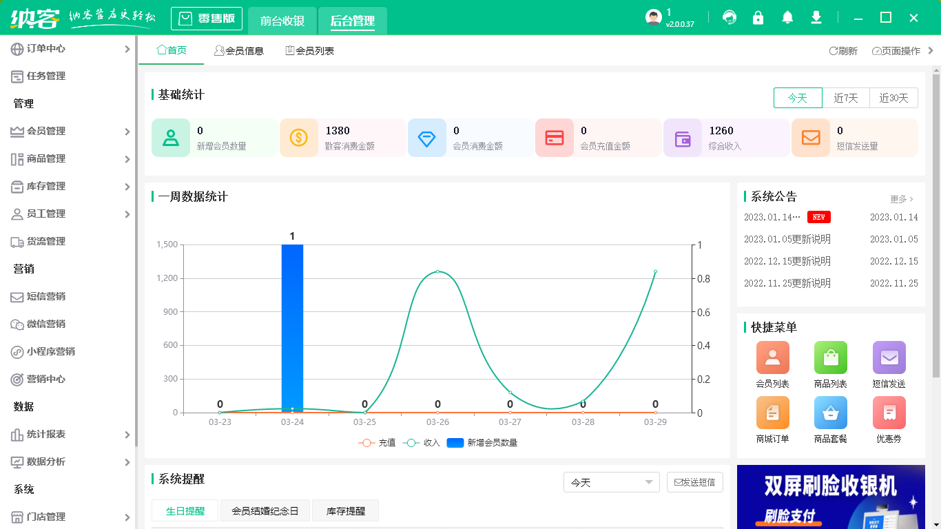 一般来说,对于一个收银系统而言,功能齐全是非常重要的一点。因为功能越全,对用户的吸引力越大,因此一个功能齐全的收银系统能够大大提高收银效率,降低运营成本。