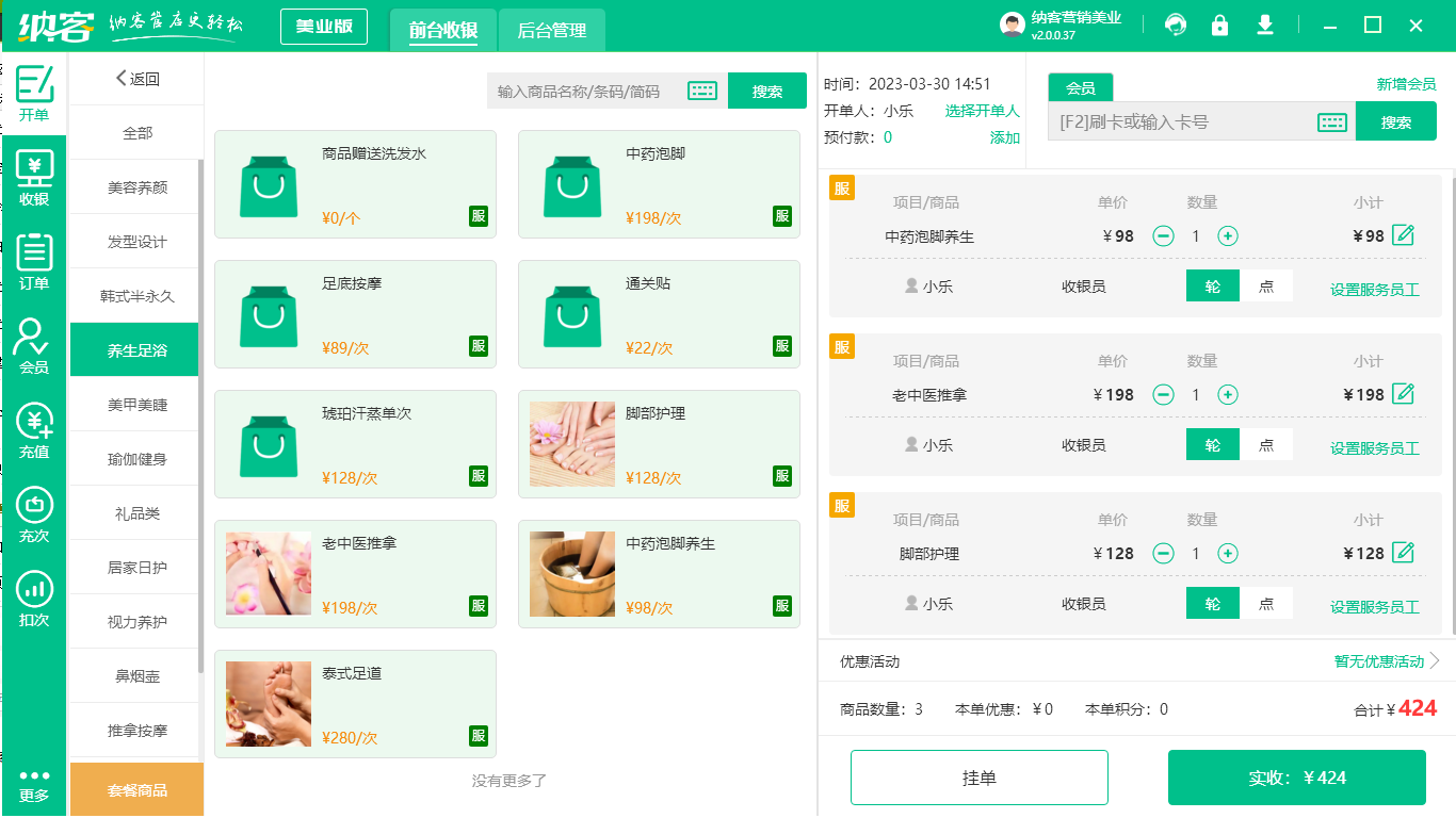 银豹足浴店收银系统操作简单方便,功能强大,使用起来十分顺手。