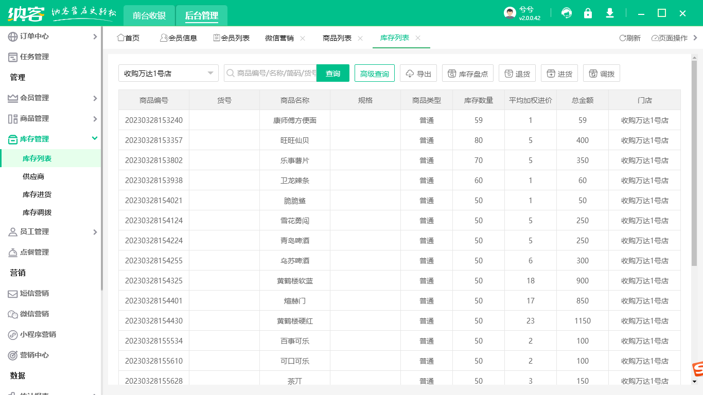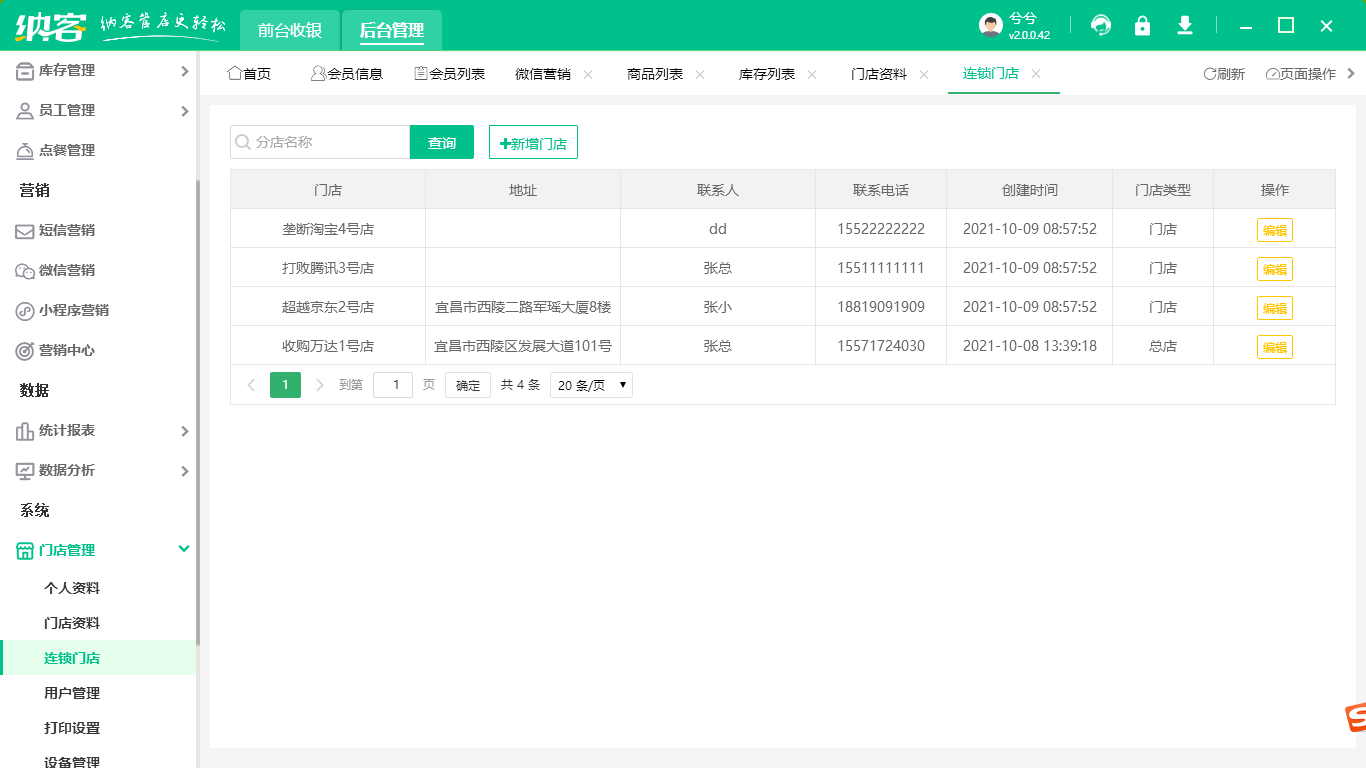 1、门店管理是对门店的进货、销售、库存等信息进行管理。