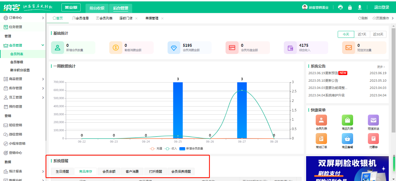 除此之外还有会员生日提醒、会员储值消费、会员积分等功能,对店铺进行精准营销。比如:会员生日时可以发送生日祝福短信,或者提供免费的蛋糕券给客户等。