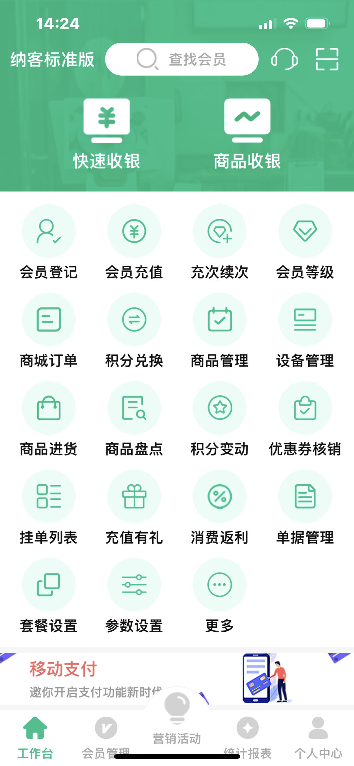 支持收银台收银和手机扫码收银。支持收银员端收银和用户端结账,支持小票打印和多账号收款,方便收银人员与顾客的结算,提高收银效率。