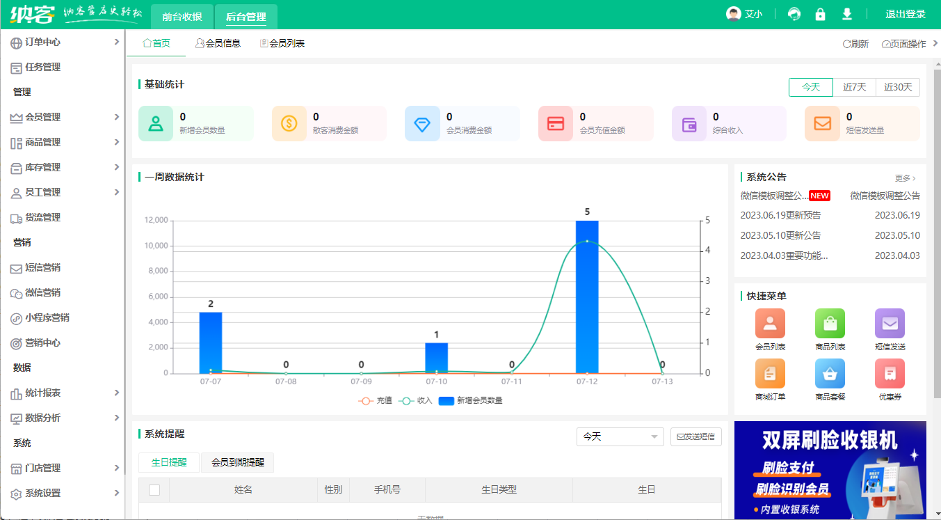 1.会员卡管理:提供多种会员卡类型,例如:储值卡、充值卡、代金券等。会员卡可支持不同的会员卡等级,设置不同的会员卡折扣。会员卡可以绑定到店内任何一台电脑上使用,且支持查看多个会员的消费记录和会员积分情况。