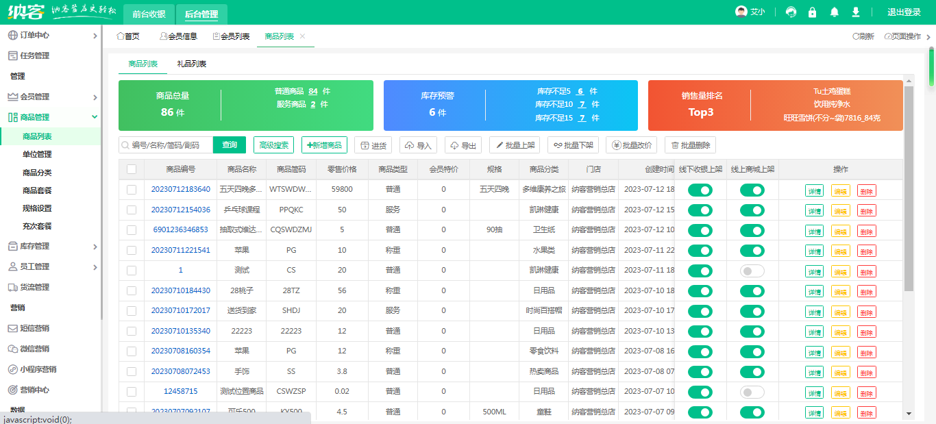 商品管理是指用户可以按照不同的分类对商品进行管理,以方便用户进行查询、销售、进货、退补等操作,而且用户可以根据自己的需求来设置商品的库存数量、售价等信息。通过商品管理,用户可以对自己需要的商品进行添加或者删除,并设置商品的销售数量和销售价格。