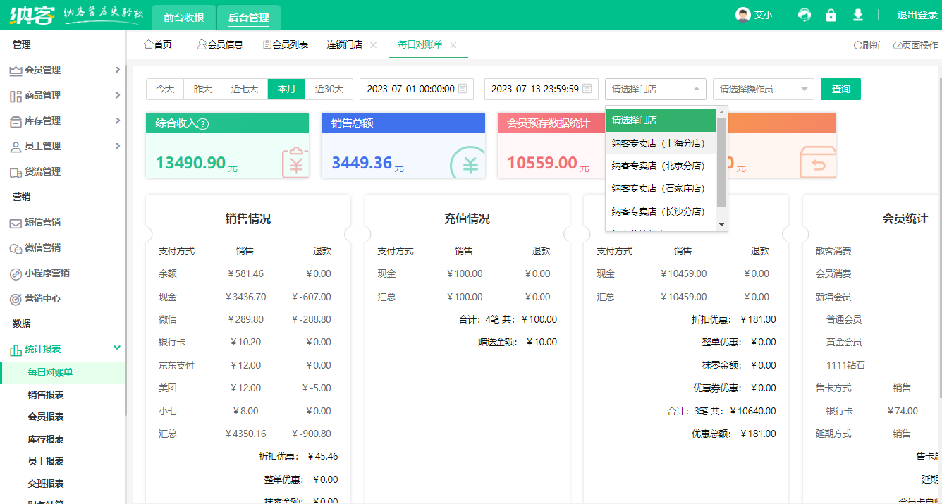 连锁门店的管理系统是整个门店经营过程中的核心,门店的日常经营工作,包括进销存、会员管理、员工管理、财务管理等等,都需要一个管理系统来支撑。连锁门店收银系统是对这些工作进行有效管理的工具,随着时代发展和科技进步,连锁门店收银系统的功能也越来越丰富,满足了各个方面的需求。例如,连锁门店收银系统支持多门店同时销售和结算,支持商品库存实时查询,支持会员营销、会员储值等等。那么,一个连锁门店收银系统应该具备哪些功能呢?下面我给大家简单介绍一下: