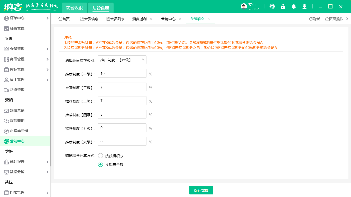 1.会员管理:根据商家设置好的会员等级,让商家更好地进行会员管理。同时也能根据不同的等级给予不同的优惠政策。