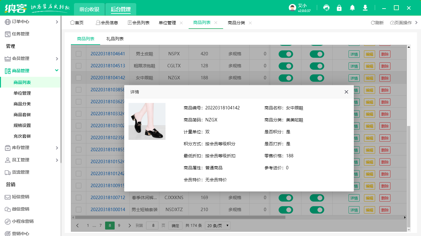 摩登7女鞋店收银系统是一款非常好用的女鞋店管理软件,主要用于鞋店收银、会员管理、商品管理、库存管理、财务报表等,同时也是一款专业的收银系统,可满足鞋店进销存的需求。