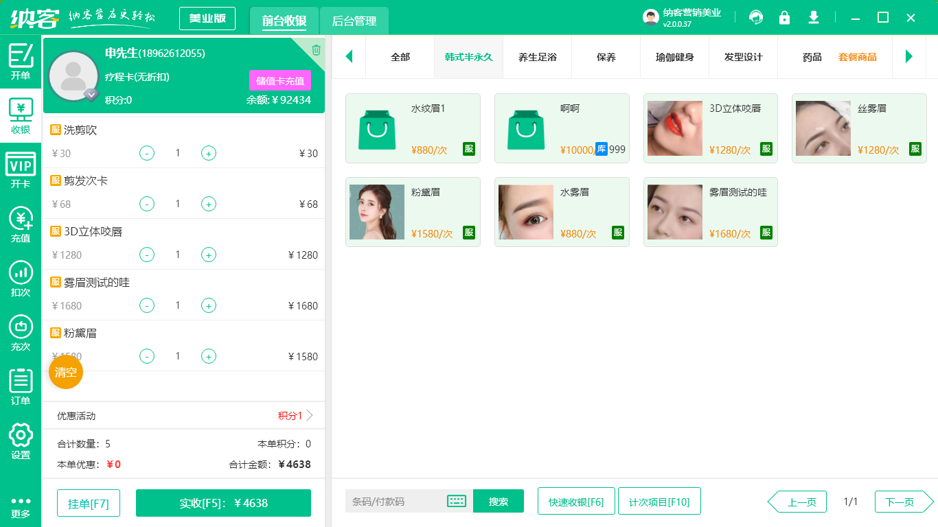 银豹美业收银系统是一款以美容、美发、美甲、纹绣等行业为主体,集会员管理、商品管理、营销活动管理、门店管理、财务管理等功能为一体的专业美容美发行业管理软件。支持微信支付、支付宝支付,支持一键接电话,支持手机短信营销。