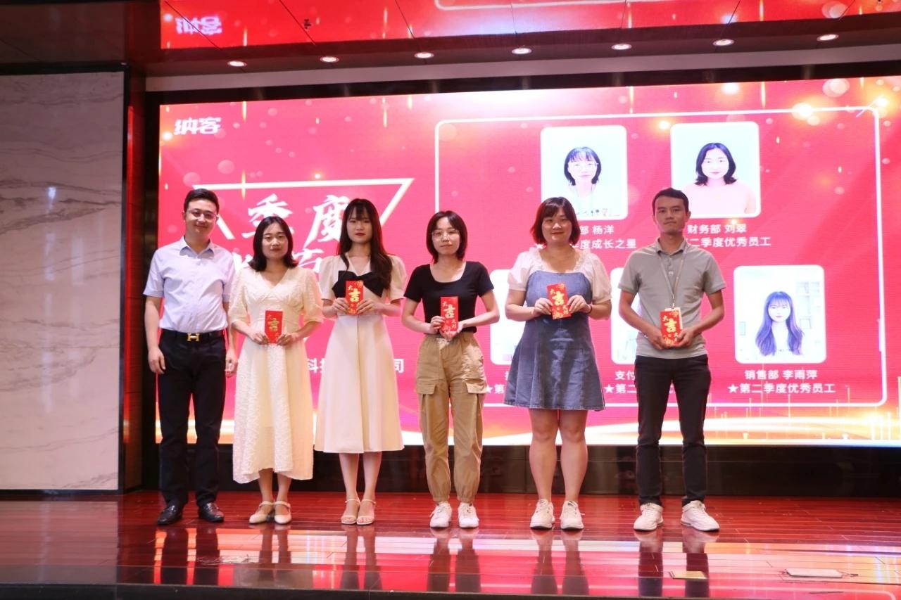 接下来进行了公司第二季度“季度之星”的颁奖仪式,多位同事因工作表现突出,获得公司和同事们的一致好评,获得了公司第二季度“季度之星”的荣誉称号,公司为他们颁发了奖金,同时他们也进行了获奖分享,上台分享都自信满满,也激励着其他同事朝着更高的目标前进!